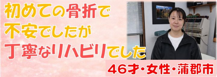 初めての骨折で不安ばかりでしたが、丁寧にリハビリをしてくださり、元の様に生活できるようになりました。